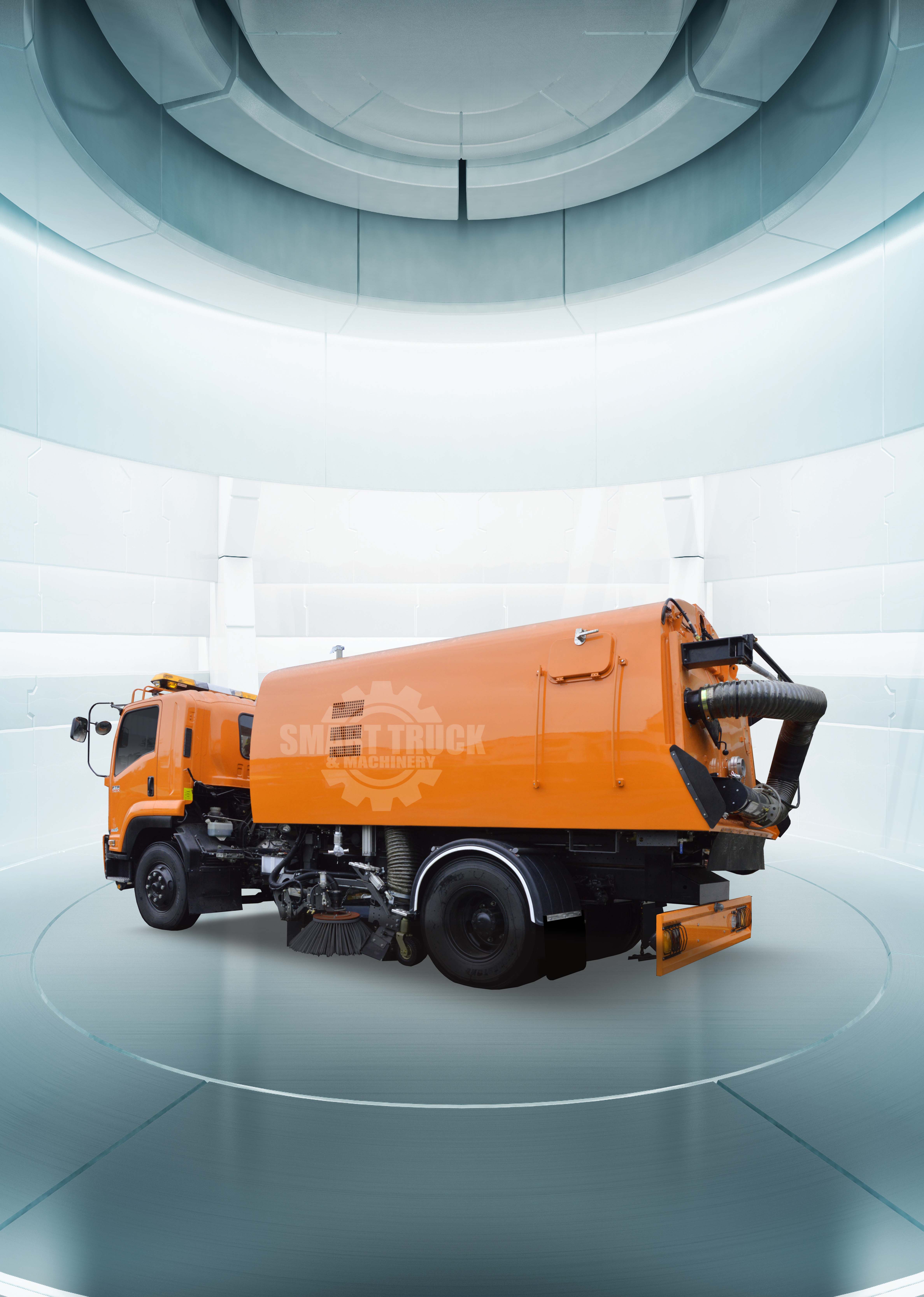 เป็นรถกวาดและดูดฝุ่นถนน ชนิด 6 ล้อ เครื่องยนต์ดีเซล มีกำลังแรงม้าสูงสุดไม่น้อยกว่า 130 แรงม้า มีปริมาณความจุถังไม่น้อยกว่า 3 ลบ.เมตร และมีปริมาณความจุถังน้ำไม่น้อยกว่า 800 ลิตร สามารถกวาด ดูดฝุ่นผง มูลฝอย เศษหิน ดิน ทราย และน้ำ เพื่อทำความสะอาดพื้นผิวถนน ไหล่ทาง สะพานลอยรถข้ามได้ทั้งสภาพที่เปียกและแห้ง ทั้งพื้นผิวที่สร้างด้วยคอนกรีตหรือถนนแอสฟัสท์ติก และมีระบบฉีดพรมน้ำเพื่อป้องกันการฟุ้งกระจายของฝุ่นผงขณะปฏิบัติงาน การทิ้งฝุ่นผง มูลฝอย ทำได้โดยการ ยกเทด้วยระบบไฮดรอลิคตัวชุดถัง ระบบกวาดดูดฝุ่นนำมาติดตั้งกับตัวรถโดยโรงงานที่ติดตั้งได้รับการรับรองระบบมาตรฐาน ISO 9001, ISO 14001 และ ISO 45001